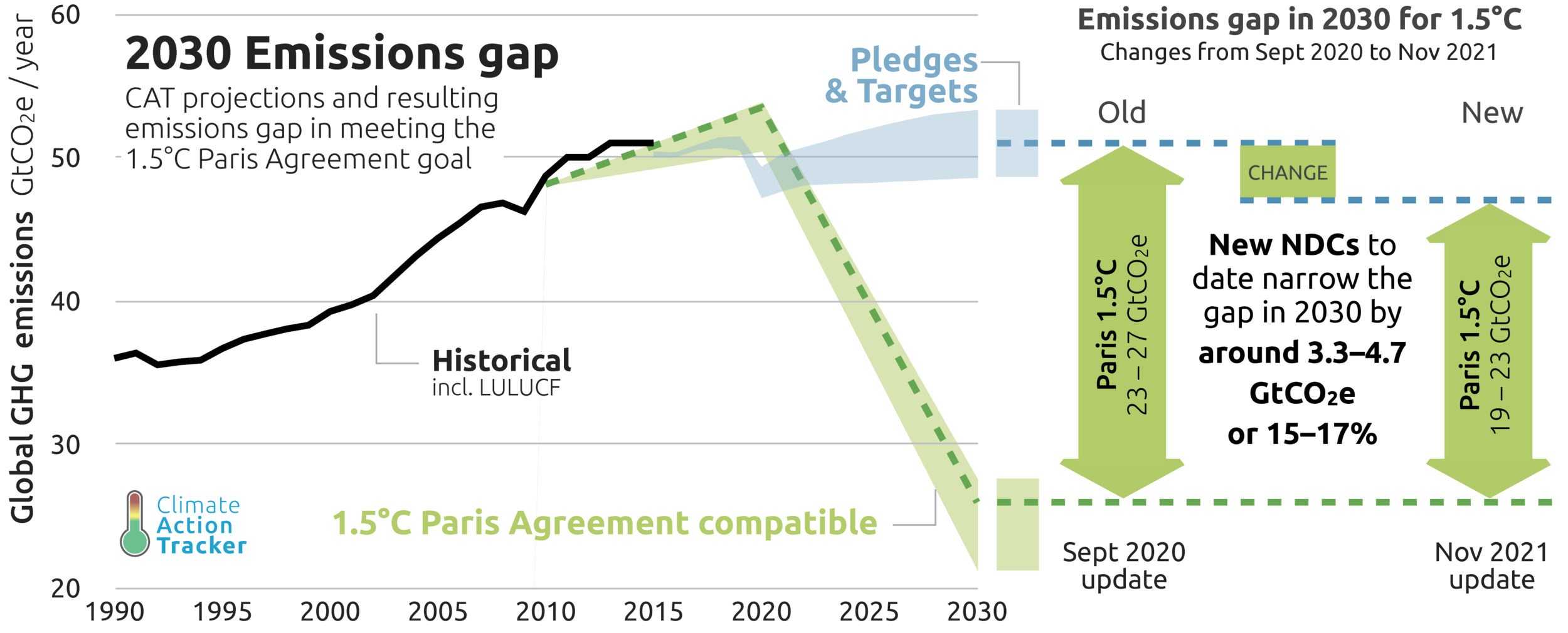 COP26 is largely considered a failure by most. As seen by the graphic below, the new commitments following the conference are not effective enough to narrow the projected “emissions gap”. Hence, the 1.5-degree target continues to unlikely to be achieved by 2030, however, progress was still made. Negotiators dubbed incremental progress as “the least worst outcome”; there are some building blocks in place, providing hope that our planet may succeed. Nonetheless, what is clear is that there is still not enough being done today. We must continue to push the communities, corporations, and countries we are a part of to do their part.